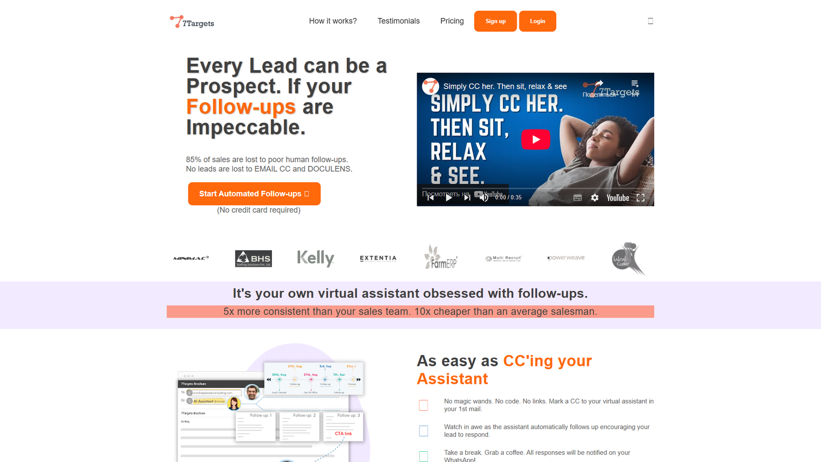 7targets.ai — AI‑ассистент для email‑переписки, который берёт на себя регулярные follow‑up письма и помогает не терять лиды из‑за человеческого фактора. Сервис особенно полезен в продажах и аутриче, где скорость и последовательность касаний напрямую влияют на конверсию.