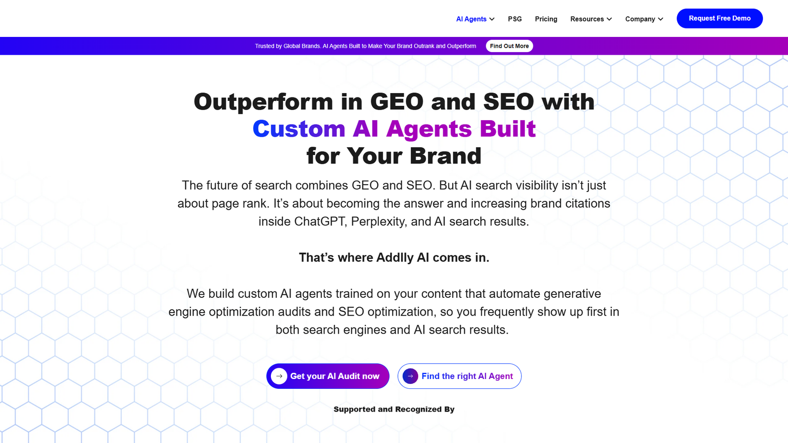 Addlly AI — это платформа кастомных AI-агентов, которые помогают брендам выигрывать конкуренцию в SEO, GEO и AI-поиске. Сервис автоматизирует создание контента, работу с социальными сетями и рост органического трафика, опираясь на ваши собственные данные и материалы.