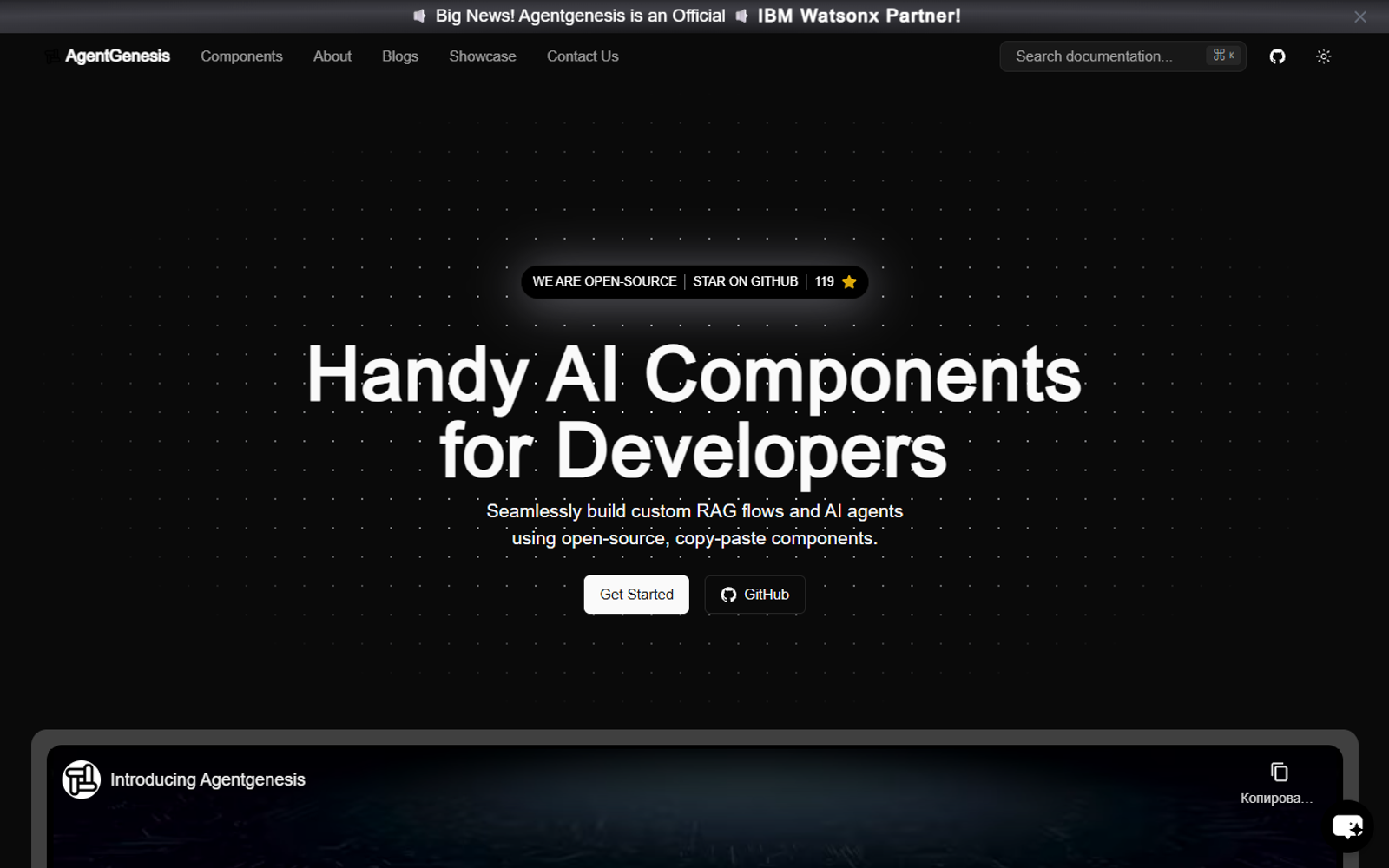 Проект развивается как open-source и доступен на GitHub. Статус официального партнёра IBM Watsonx подчёркивает ориентацию на корпоративные сценарии и совместимость с промышленными AI-стеками. AgentGenesis подойдёт тем, кто хочет ускорить разработку AI-функций и при этом сохранить контроль над кодом.