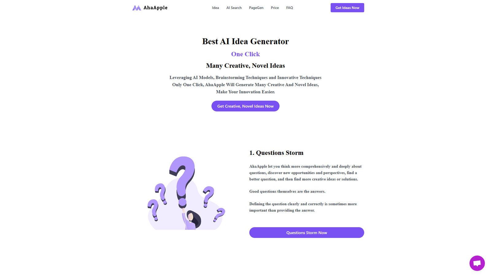 AhaApple — это онлайн-сервис на базе ИИ для генерации идей в один клик. Он помогает находить креативные и нестандартные решения для проектов, бизнеса, контента и личных задач.