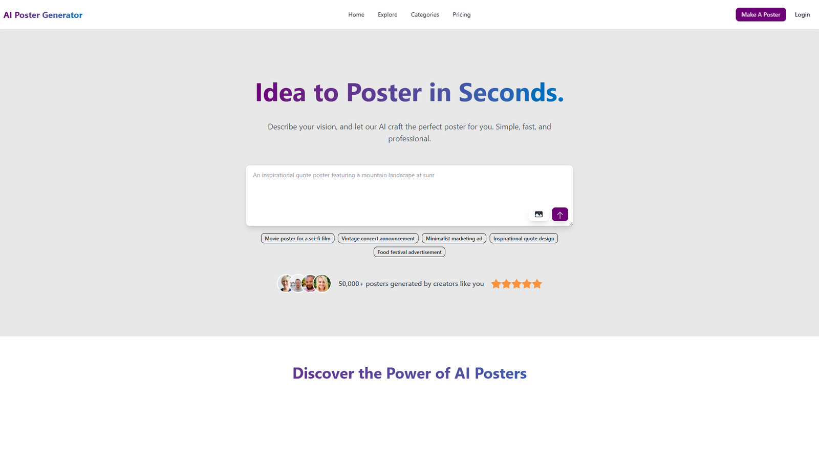 AI Poster Generator — это онлайн‑сервис, который превращает любую вашу идею в профессиональный постер за считанные секунды. Просто опишите задумку текстом, а нейросеть сама подберёт стиль, композицию и визуальные акценты.