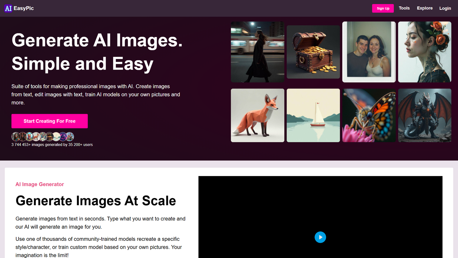 AIEasyPic — онлайн-инструмент для быстрой генерации изображений с помощью ИИ. Пользователь вводит текстовый запрос, а нейросеть за несколько секунд создает картинку в нужном стиле, формате и настроении.