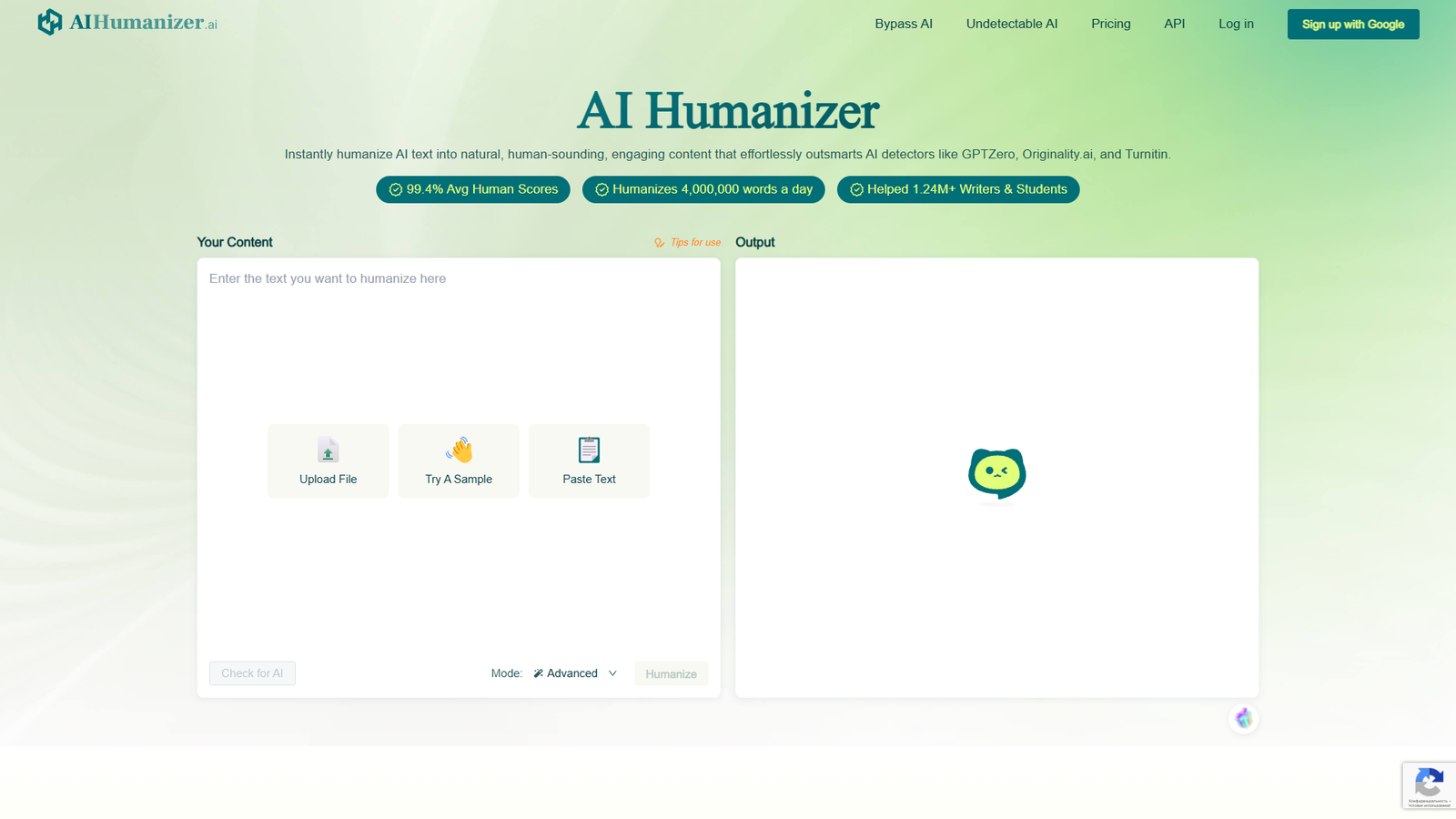 Алгоритм обучен на миллионах примеров человеческого письма. За счет этого он улавливает привычные языковые паттерны, вариативность синтаксиса, естественные повторы и паузы. Пользователь вставляет текст, загружает файл или пробует готовый пример — на выходе получает переработанную версию, которая читается как написанная человеком.