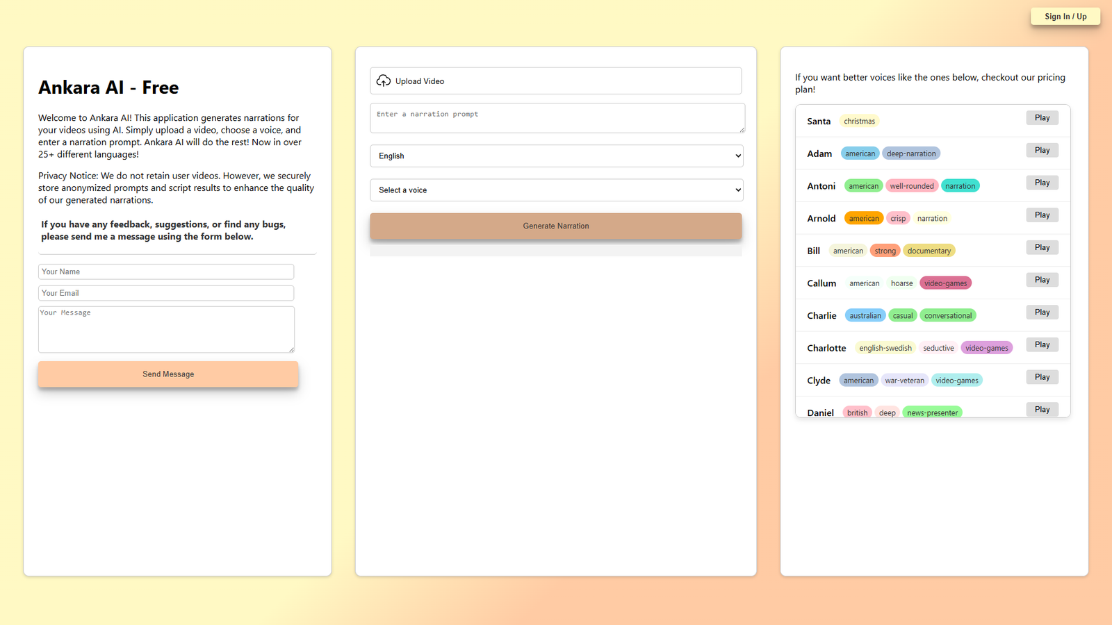 Ankara AI — это онлайн‑сервис для автоматической озвучки и создания дикторских комментариев к вашим видео с помощью искусственного интеллекта. Платформа особенно удобна для создателей контента, маркетологов, преподавателей и всех, кто хочет быстро добавить профессиональное закадровое сопровождение без студии и диктора.