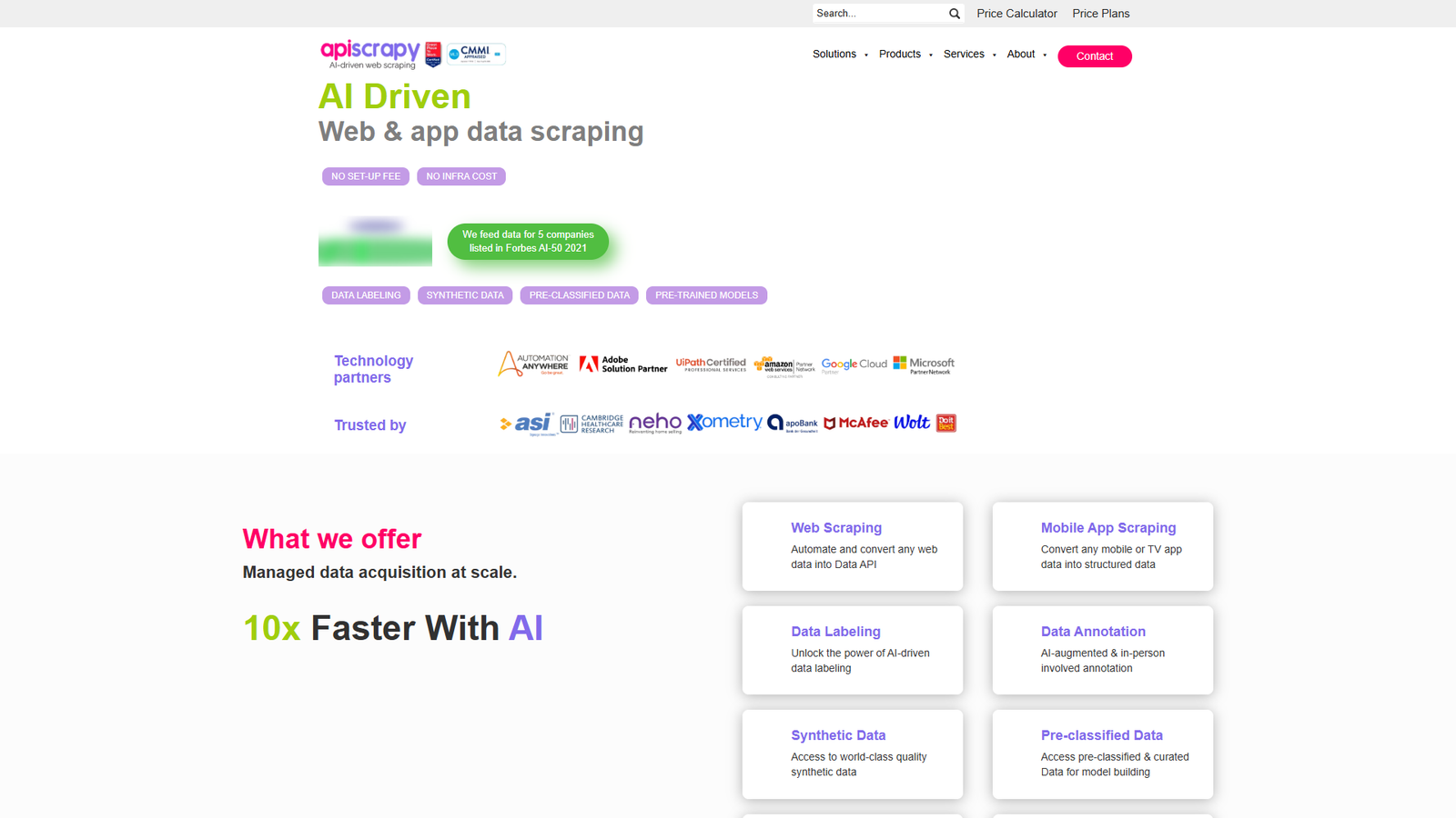 Сервис ориентирован на управляемый сбор данных «под ключ» и заявляет до 10-кратного ускорения процессов за счёт ИИ. APISCRAPY подходит компаниям, которым нужны надёжные, масштабируемые конвейеры данных без вложений в собственный скрейпинг-стек и поддержку инфраструктуры.