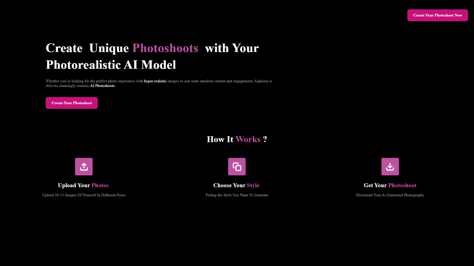 Пользователь выбирает один или несколько стилей съёмки: от портретов и lifestyle до более креативных образов. Система генерирует серию снимков в выбранных сетапах, что удобно для соцсетей, личного бренда, блогов и аватаров.
