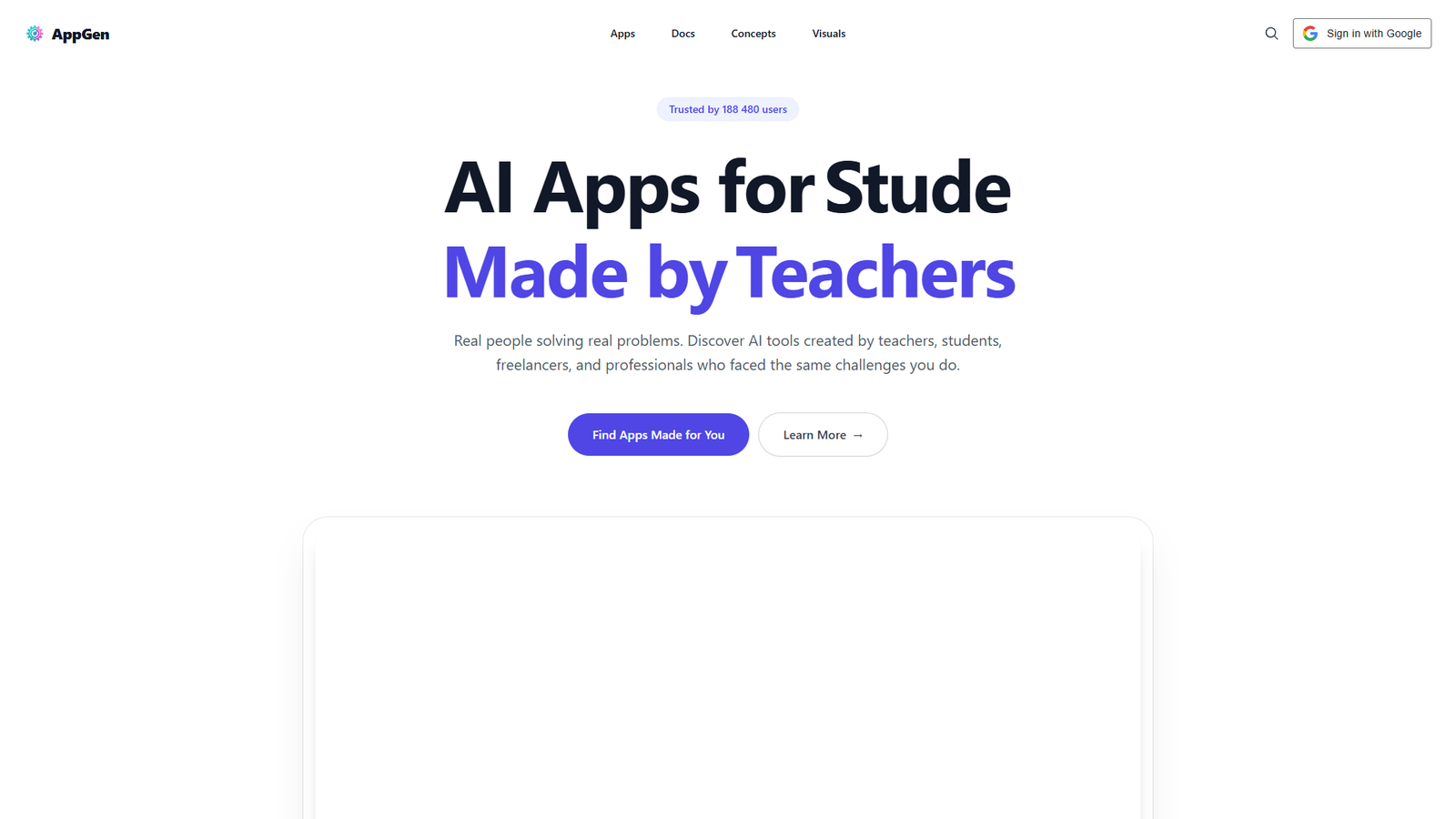 AppGen — это платформа с коллекцией готовых AI‑приложений, созданных реальными людьми для реальных задач. Здесь вы найдете инструменты, разработанные учителями, студентами, фрилансерами и профессионалами, которые сами сталкивались с такими же вызовами, как и вы.