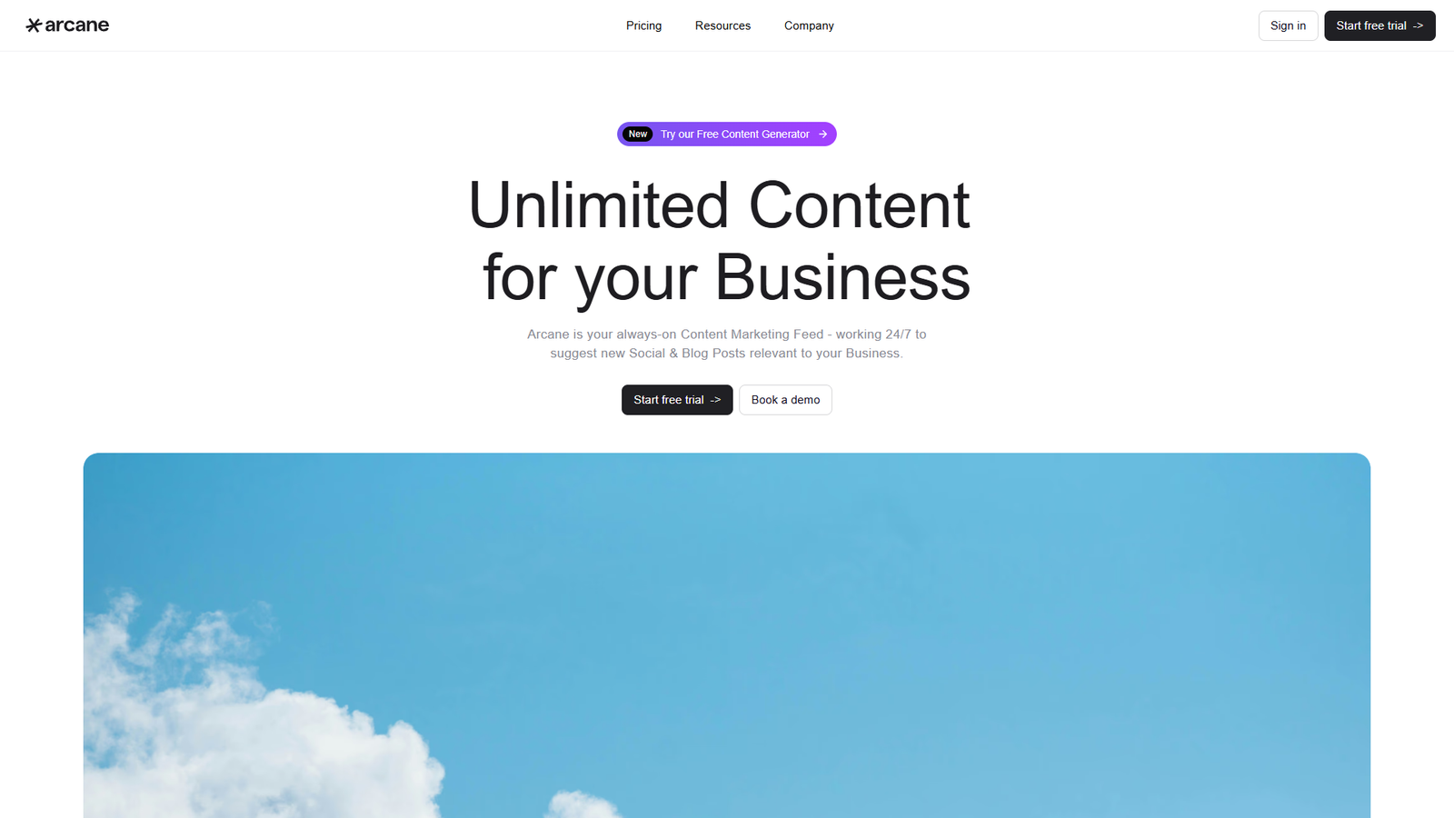 Arcane — это платформа контент-маркетинга для стартапов и растущего бизнеса, которая превращает инсайты о компании в готовый контент. Сервис работает как «всегда включённая» контент-лента: 24/7 предлагает идеи и черновики постов для соцсетей и блога, опираясь на данные о вашем продукте и аудитории.