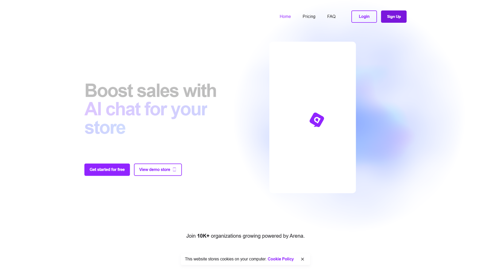 Arena Chat — это AI-чатбот для интернет-магазинов и онлайн‑бизнеса, который помогает увеличивать продажи и разгружать поддержку. Он общается с посетителями сайта 24/7, отвечает на вопросы и подбирает товары под запрос клиента.