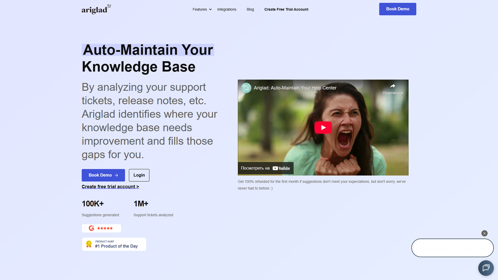 Ariglad автоматизирует обновление базы знаний на основе реальных обращений в поддержку и заметок о релизах. Инструмент анализирует тикеты, находит повторяющиеся вопросы и пробелы в документации, а затем генерирует точечные улучшения статей.