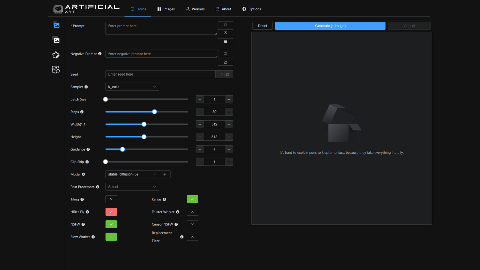 Сервис поддерживает фильтры NSFW, управление воркерами Stable Horde и дополнительные настройки производительности. Это делает Artificial Art удобным инструментом как для экспериментов с ИИ-графикой, так и для регулярной творческой работы.