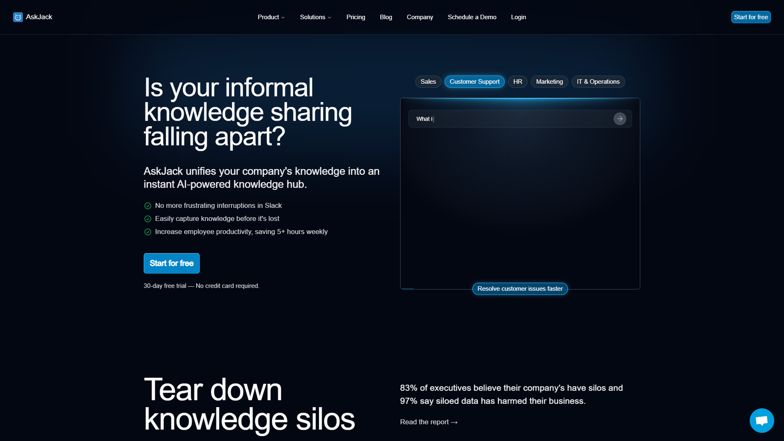AskJack — это корпоративный ИИ-ассистент, который превращает разрозненные знания вашей компании в единый, мгновенно доступный хаб. Сервис подключается к бизнес‑приложениям и убирает «информационные силосы», позволяя сотрудникам получать точные ответы на рабочие вопросы за секунды.