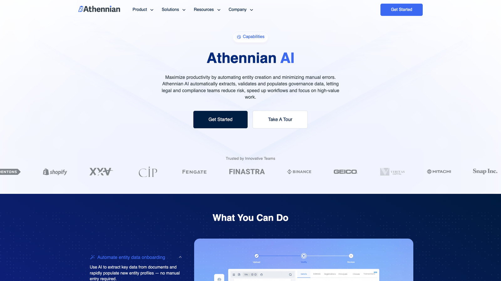 Athennian AI — набор ИИ-инструментов для юридических и комплаенс-команд, которые ведут корпоративные сущности и данные по управлению. Он снижает долю ручного ввода при создании и обновлении профилей компаний.