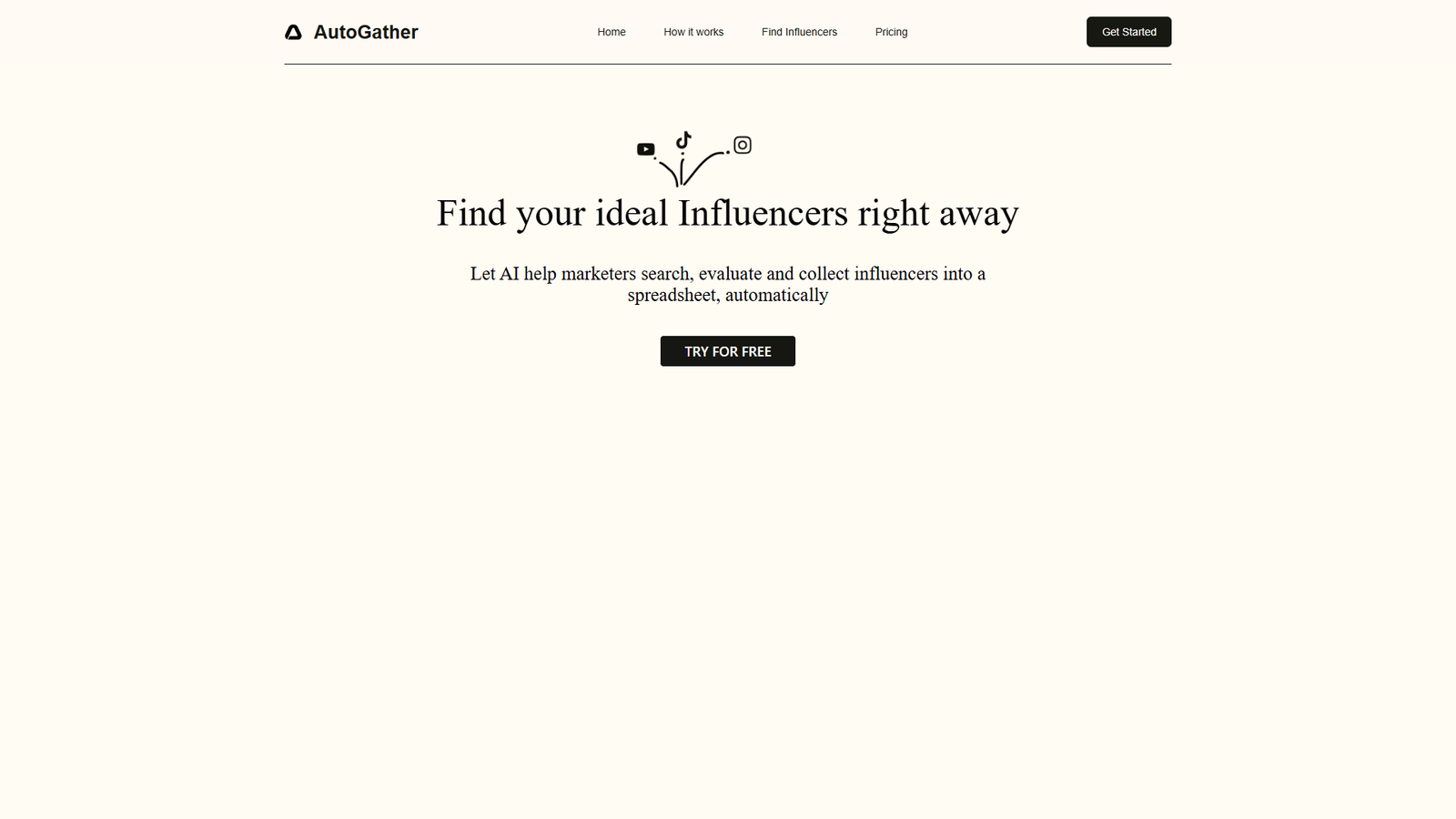 Autogather — инструмент для поиска инфлюенсеров с помощью ИИ на Instagram, YouTube и TikTok. Маркетолог задает критерии, а система подбирает авторов, оценивает их и собирает результаты в удобную таблицу.