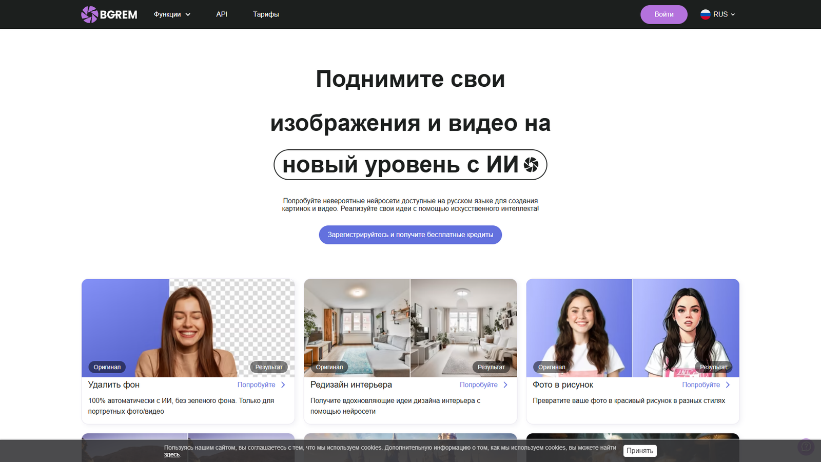 BgRem — онлайн-сервис с ИИ-инструментами для создания и улучшения визуального контента на русском языке. Подходит тем, кто работает с фото и видео для соцсетей, рекламы, маркетплейсов или личных проектов и хочет получать результат быстро, без сложного софта.