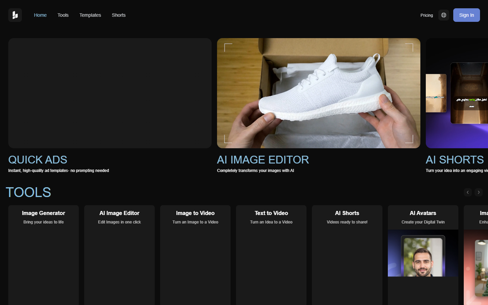 Через модуль Quick Ads можно собирать готовые рекламные объявления за минуты, используя шаблоны без ручного прописывания подсказок. Инструмент AI Shorts превращает короткую идею или текст в вертикальный ролик, ориентированный на форматы TikTok, Reels и YouTube Shorts.