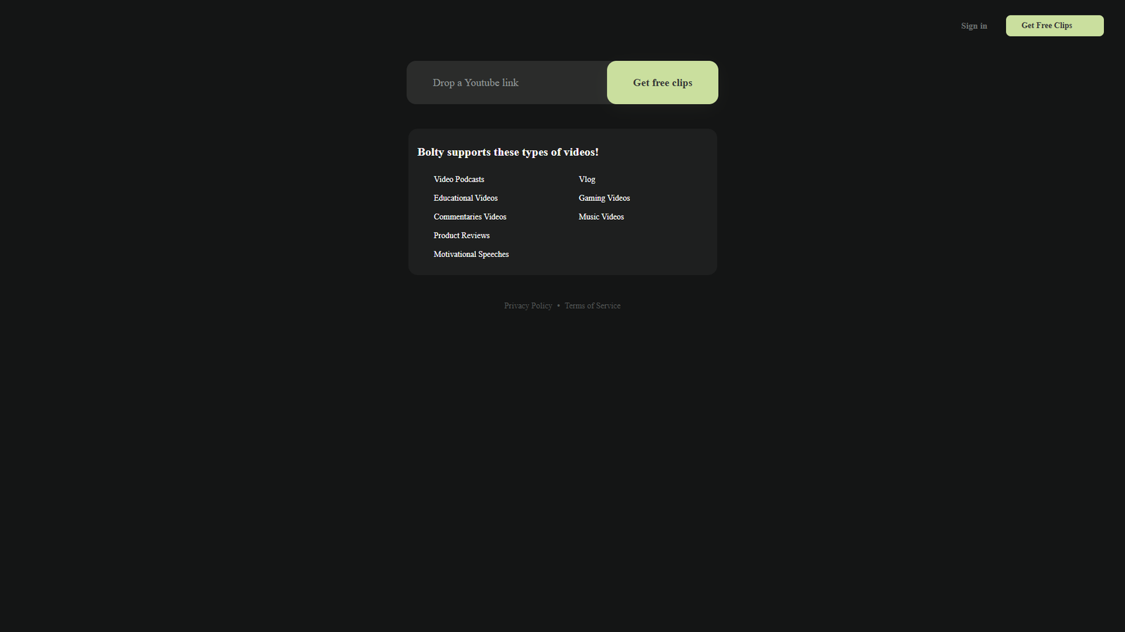 Чтобы начать, достаточно загрузить видео и нажать одну кнопку — сервис автоматически сгенерирует клипы. Есть возможность получить бесплатные клипы, чтобы протестировать качество и понять, как Bolty впишется в ваш контент‑процесс.