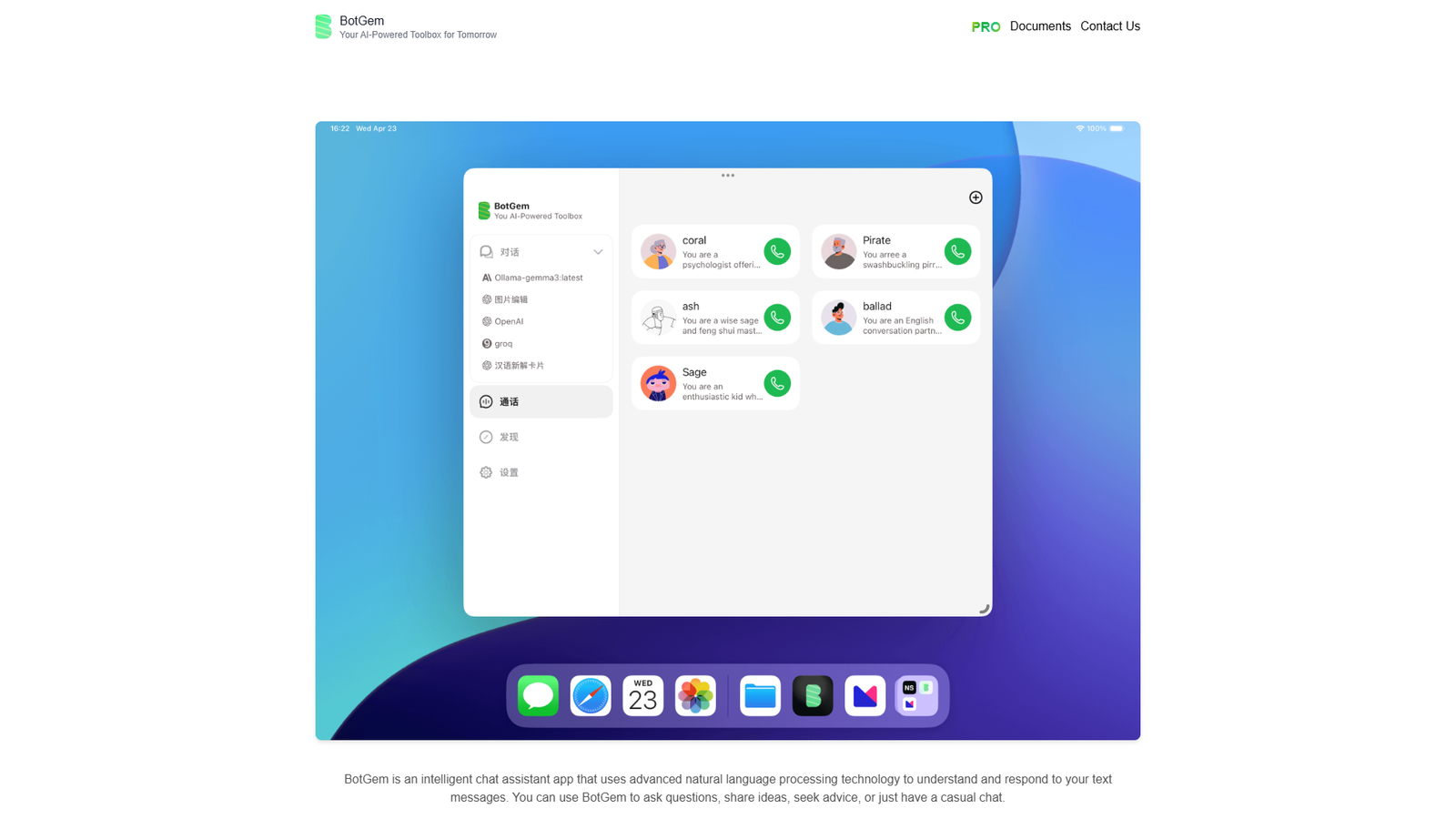 BotGem — приложение умного чат-ассистента, которое понимает ваши сообщения и отвечает на них с помощью продвинутой обработки естественного языка. Подходит для вопросов, обсуждения идей, поиска советов и повседневного общения.