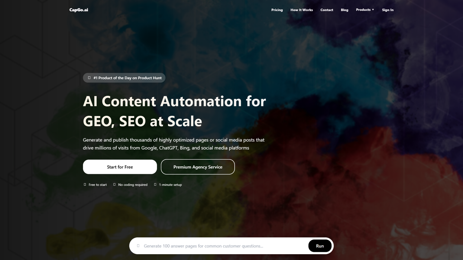 Capgo AI — это платформа для массовой автоматизации контента с упором на GEO и SEO-продвижение. Сервис помогает создавать и публиковать тысячи высокооптимизированных страниц и постов в соцсетях, которые привлекают органический трафик из Google, Bing, ChatGPT и социальных платформ.