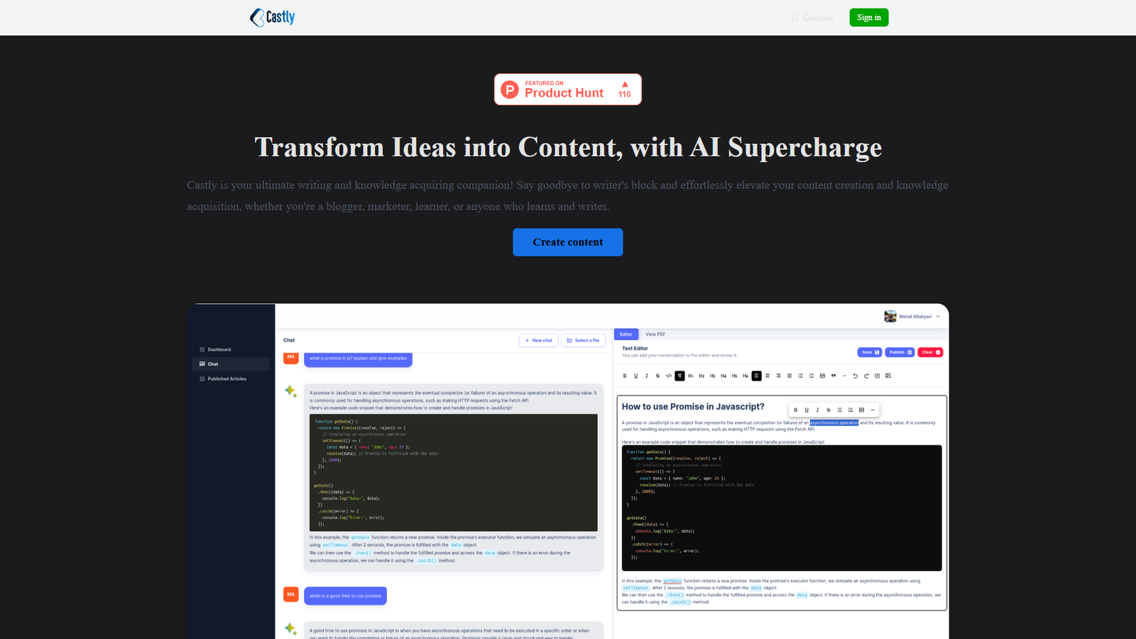 Castly фокусируется на скорости: от идеи до финального текста проходит минимум шагов. После редактирования вы можете легко делиться контентом с командой или публиковать его в нужных каналах, используя Castly как центр вашей текстовой работы.