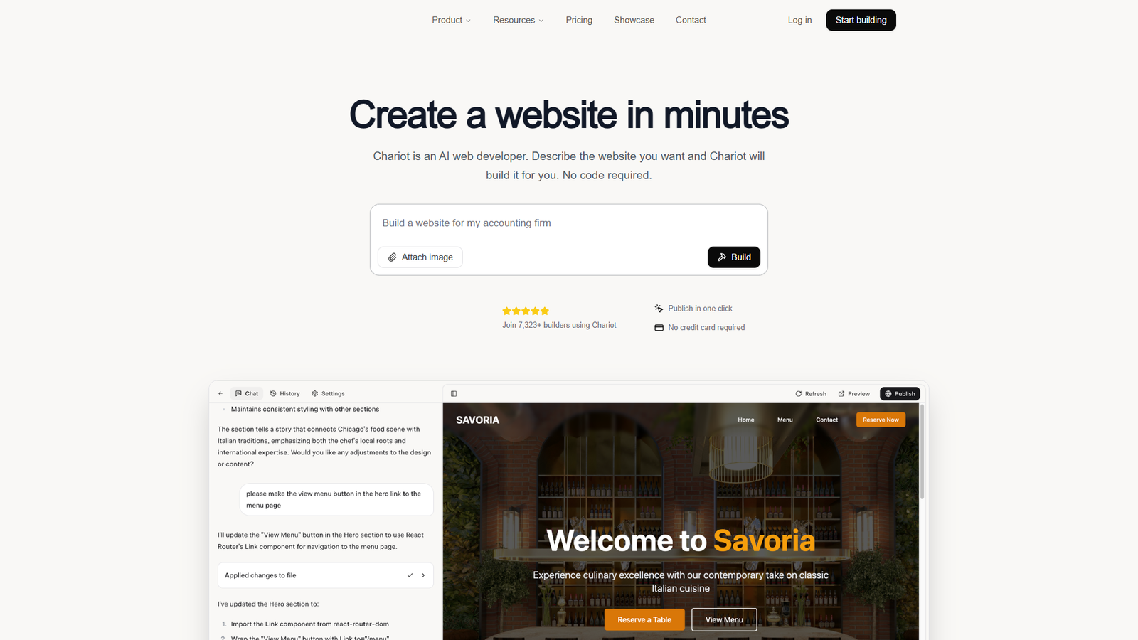 Chariot — это ИИ‑разработчик сайтов, который позволяет создать полноценный веб‑сайт за считанные минуты без навыков программирования.