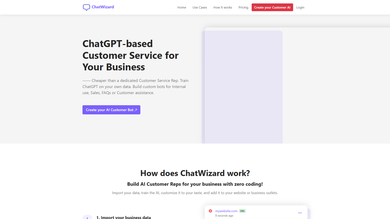 ChatWizardAI — это платформа для создания кастомных ChatGPT‑подобных чат-ботов для сайтов и онлайн-бизнеса без программирования. Сервис позволяет подключить базу знаний, сайт компании, PDF-документы или даже вики по игре и за несколько минут получить умного ассистента, который отвечает на вопросы как живой оператор.