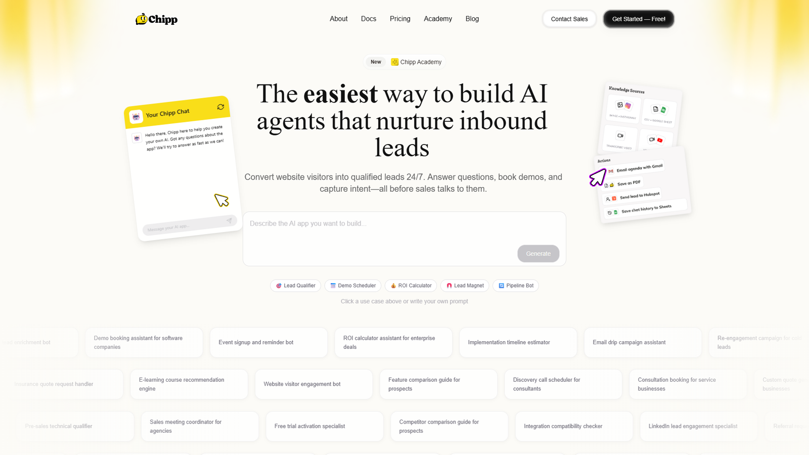 Chipp — это платформа для создания AI-агентов, которые помогают превращать посетителей сайта в квалифицированные лиды и автоматизировать общение с клиентами 24/7. Сервис позволяет быстро собрать собственное AI-приложение на базе ваших знаний, базы статей и внутренних документов компании.