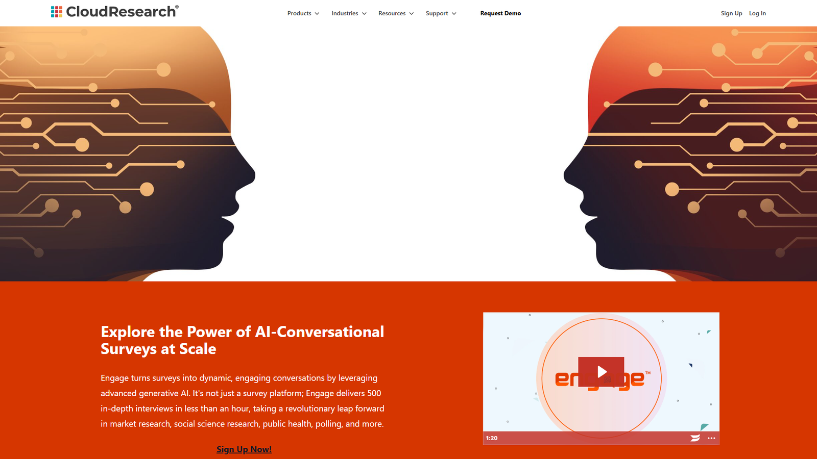 Engage — инструмент CloudResearch для проведения исследований с помощью разговорных опросов на базе генеративного ИИ. Вместо стандартных анкет респонденты видят диалог, который подстраивается под их ответы и раскрывает мотивацию, эмоции и контекст.