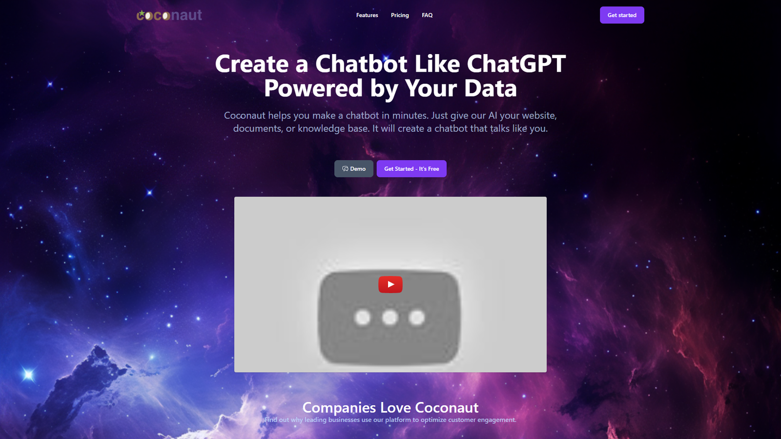 Coconaut.ai — это платформа для быстрого создания чат-ботов в стиле ChatGPT, которые обучаются на ваших собственных данных: сайте, документах или базе знаний. Сервис помогает компаниям автоматизировать ответы на вопросы клиентов и повысить вовлечённость без сложной разработки и настройки.