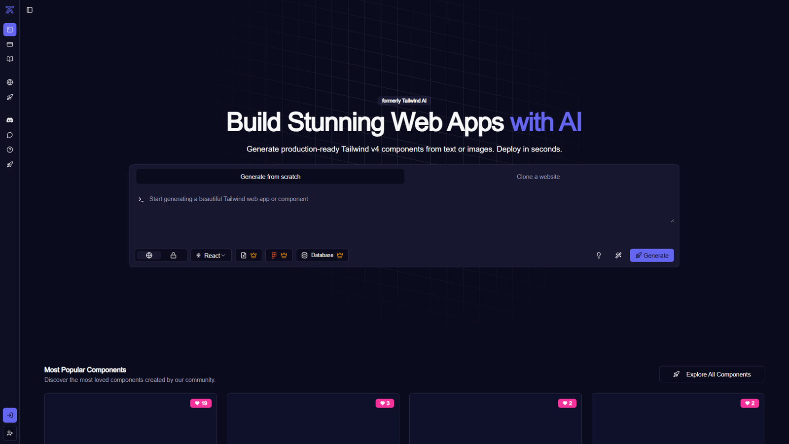 CodeRocket — это AI-конструктор для создания современных веб‑приложений и сайтов на Tailwind v4 за считанные секунды. Сервис генерирует production‑ready компоненты и целые интерфейсы по текстовому описанию или на основе изображений, помогая разработчикам и дизайнерам ускорить работу в разы.