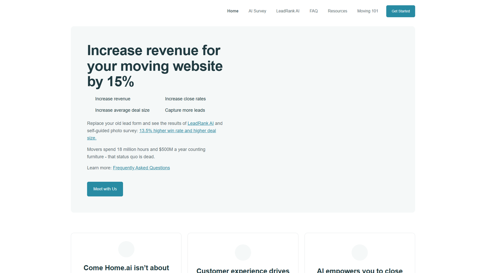 ComeHome.ai — это AI-платформа для сайтов мувинговых компаний, которая превращает обычную форму заявки в умный, доверительный пользовательский путь и помогает зарабатывать больше на каждом клиенте.