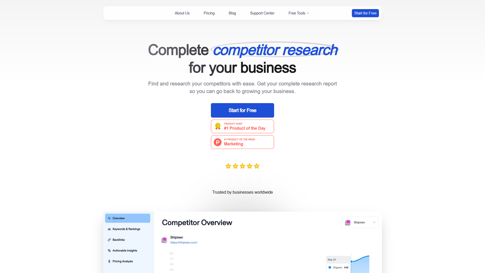 CompetitorResearch помогает системно разбирать конкурентную среду с опорой на ИИ и большие массивы данных. Инструмент собирает информацию о компаниях, ссылочном профиле, ценах и ключевых словах, а затем сводит её в структурированный отчет.