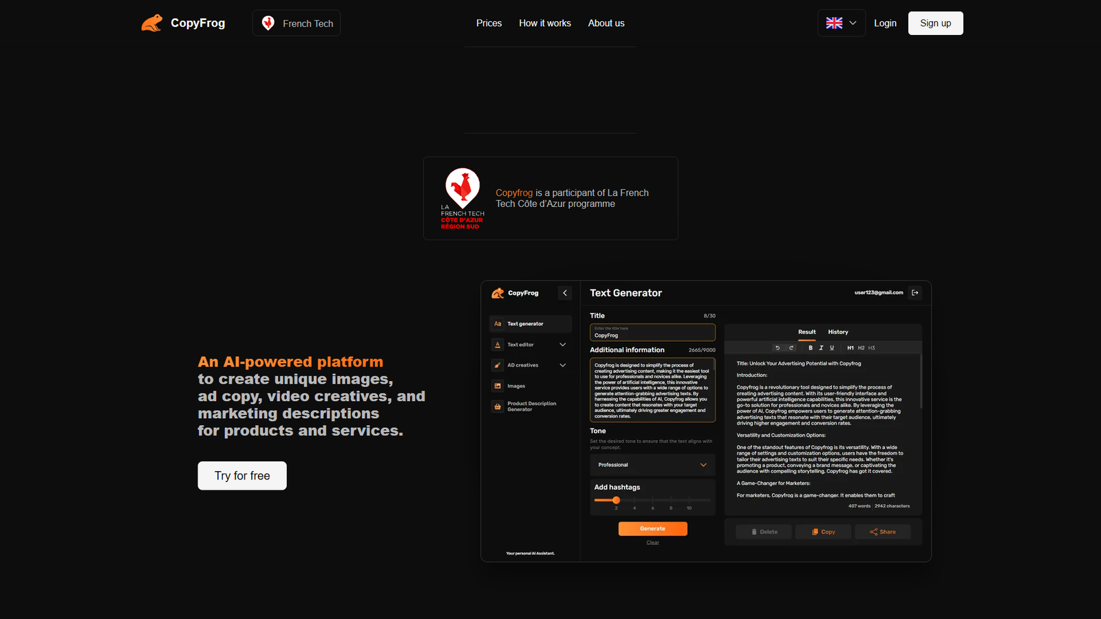 В CopyFrog можно создавать рекламные тексты, описания товаров, маркетинговые сообщения и посты для продвижения. Алгоритмы подстраиваются под задачу: от коротких объявлений до развернутых описаний, адаптированных под конкретную аудиторию.