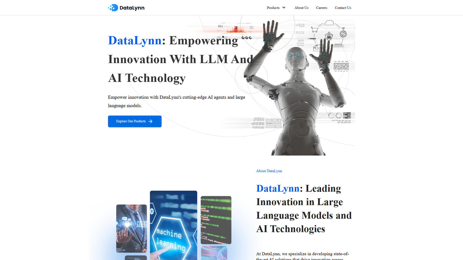DataLynn фокусируется на работе с крупными языковыми моделями и специализированными AI-агентами для бизнеса и разработчиков. На сайте собраны продукты, которые помогают внедрять ИИ в существующие процессы без глубокого погружения в машинное обучение.