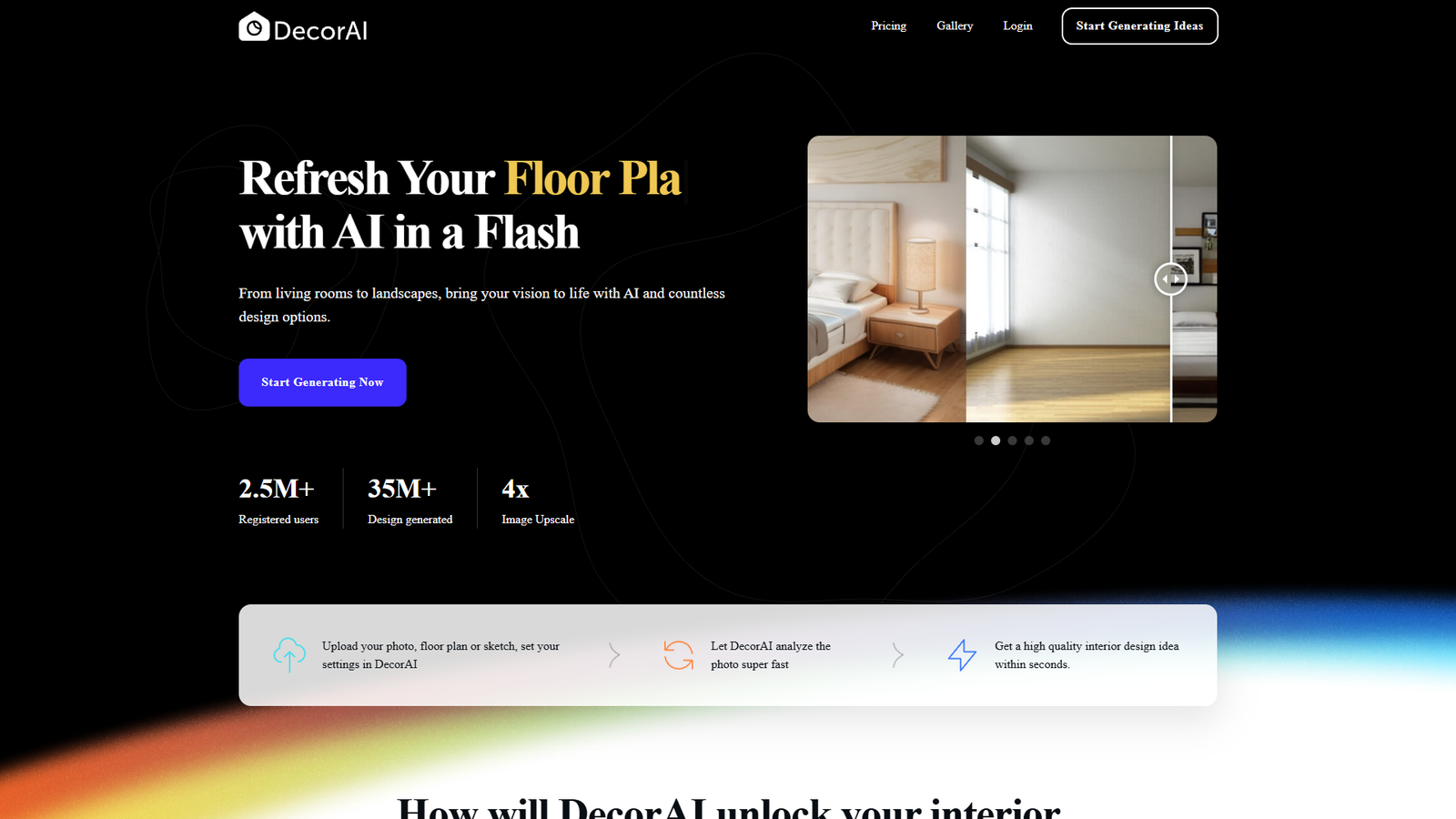 DecorAI — это онлайн‑сервис на базе искусственного интеллекта, который за секунды генерирует идеи для интерьера и планировочных решений по вашей фотографии, плану или эскизу помещения.