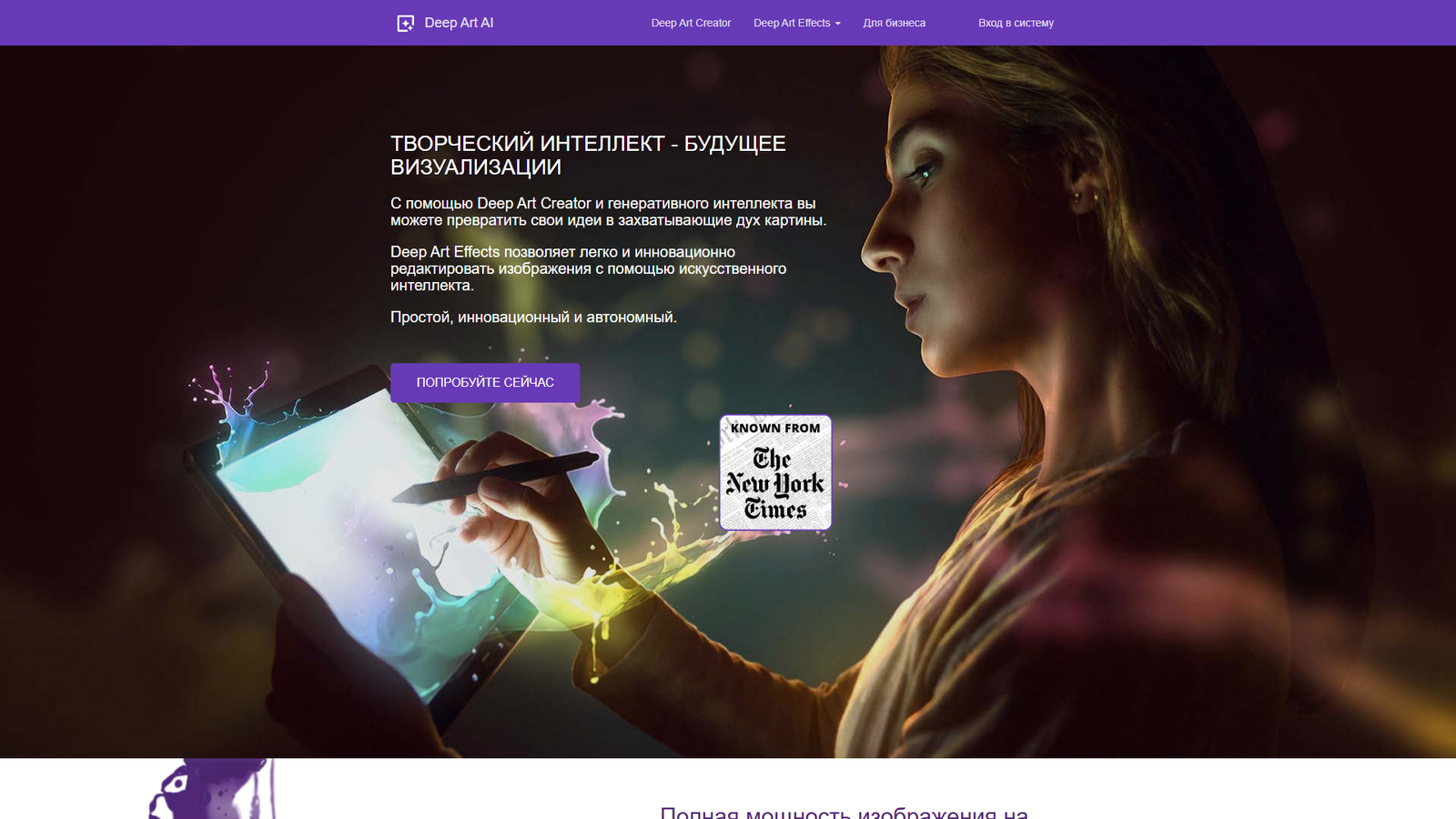 С помощью Deep Art Creator вы можете применять десятки художественных стилей, комбинировать эффекты и экспериментировать с визуальными образами без навыков дизайна. Сервис подойдёт как любителям, так и профессиональным художникам, фотографам, SMM-специалистам и дизайнерам, которым нужны яркие и запоминающиеся визуалы.