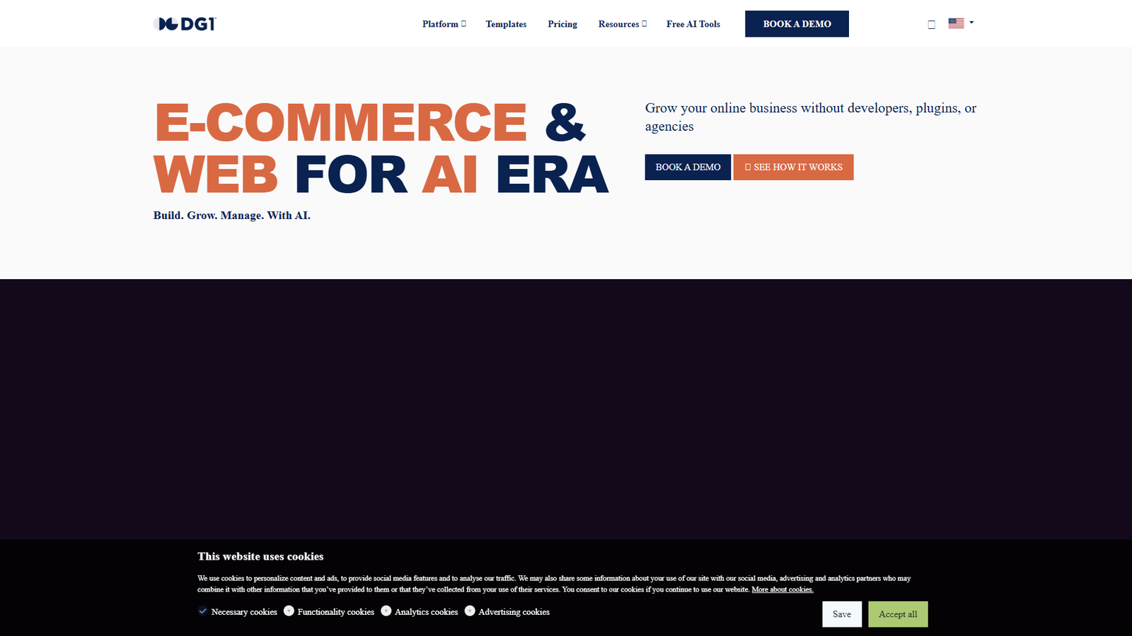 DG1 — это самоходная eCommerce-платформа нового поколения, созданная для эпохи ИИ. Сервис объединяет сайт, интернет-магазин, маркетинг и аналитику в одной системе, помогая компаниям расти онлайн без разработчиков, плагинов и агентств.