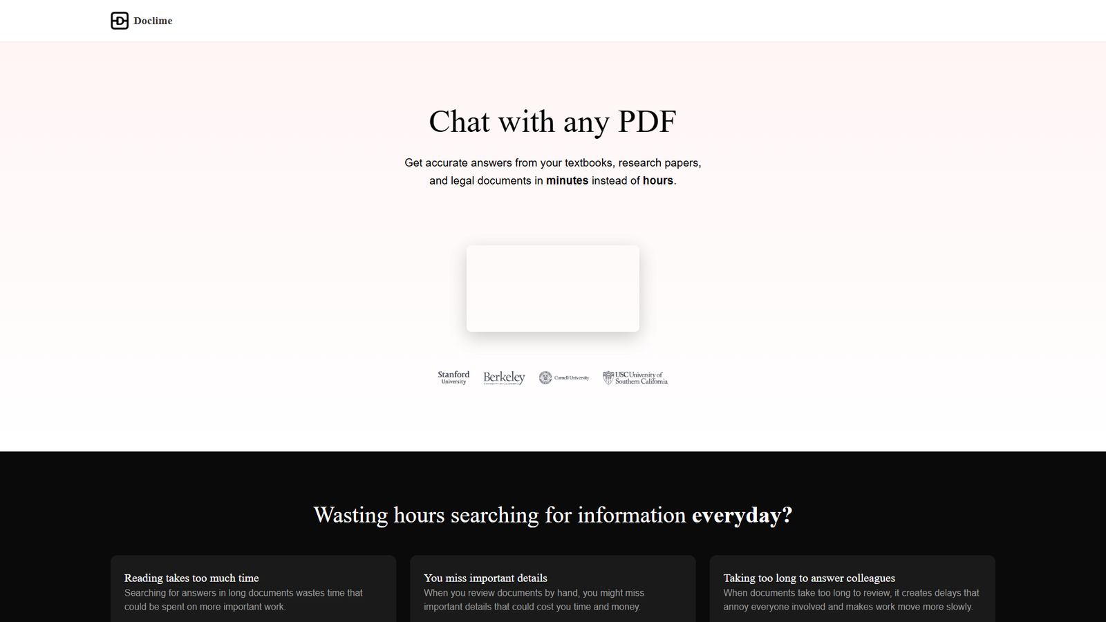 Doclime — это онлайн‑сервис, который позволяет буквально «разговаривать» с любым PDF-документом. Вместо того чтобы вручную пролистывать сотни страниц, вы загружаете файл, задаёте вопросы на естественном языке и получаете точные ответы с указанием источника в тексте.