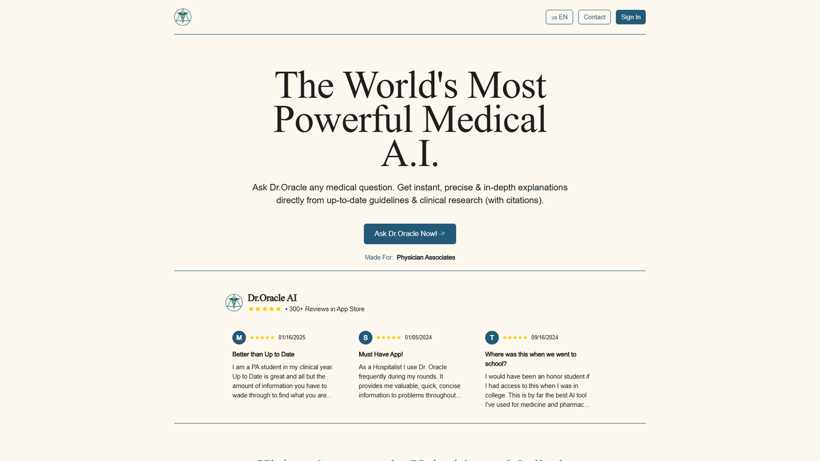 Dr.Oracle демонстрирует один из самых высоких результатов на экзамене USMLE и имеет сотни положительных отзывов в App Store. Это делает сервис надежным помощником в ежедневной клинической практике и подготовке к экзаменам.
