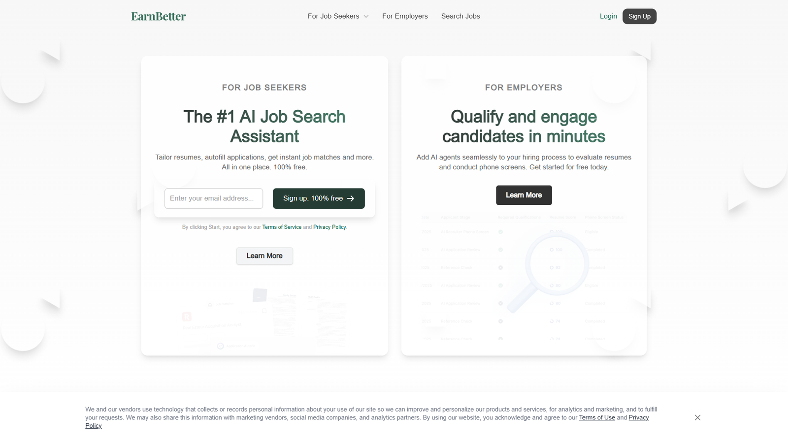 EarnBetter — это AI-ассистент для поиска работы и подбора персонала, который помогает соискателям быстрее получать приглашения на собеседования, а работодателям — оперативно отбирать подходящих кандидатов.