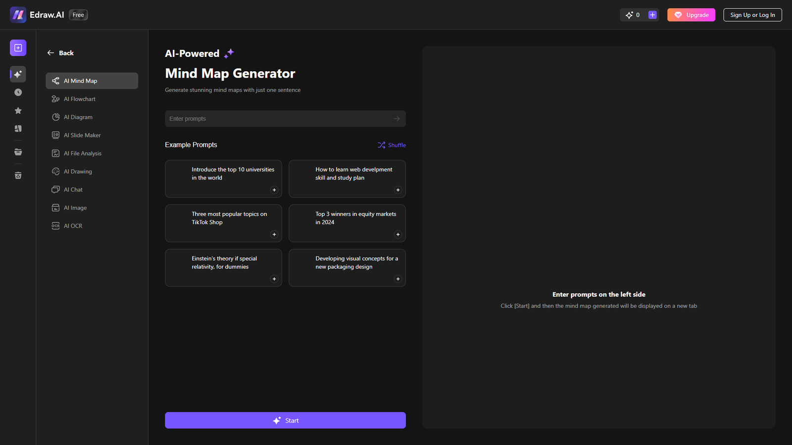Edraw.AI — это онлайн-инструмент для быстрой генерации интеллект‑карт и других диаграмм на основе текста. Пользователь вводит одну фразу или короткое описание, а нейросеть строит структурированную карту знаний с ветками, подпунктами и логическими связями.