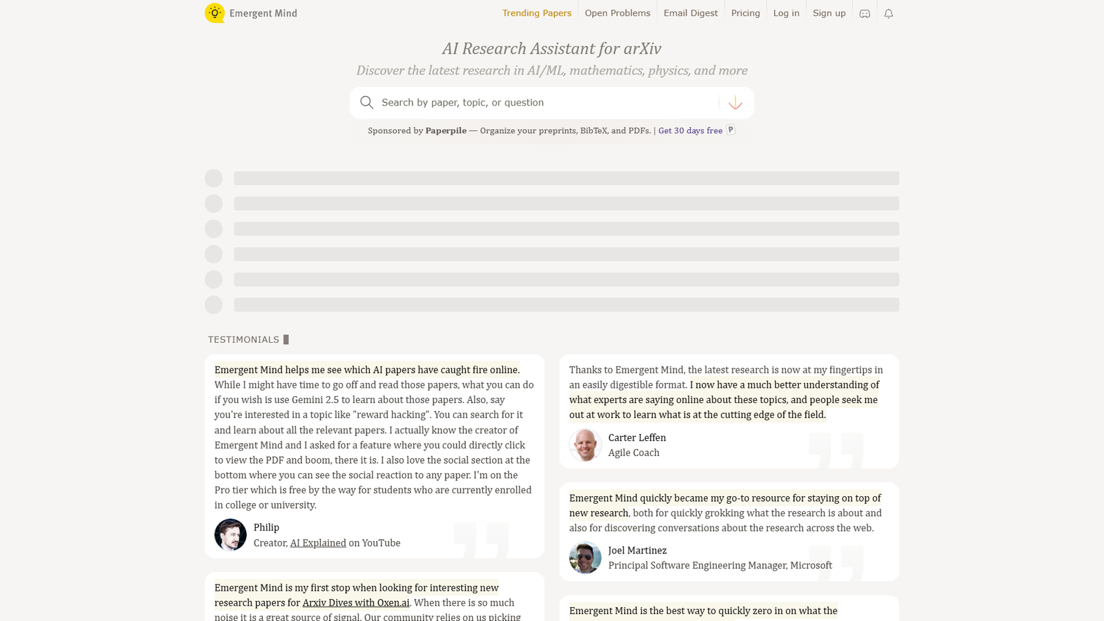 Emergent Mind — это ИИ-ассистент для работы с научными статьями arXiv, который помогает быстро ориентироваться в новейших исследованиях по ИИ/ML, математике, физике и другим областям.