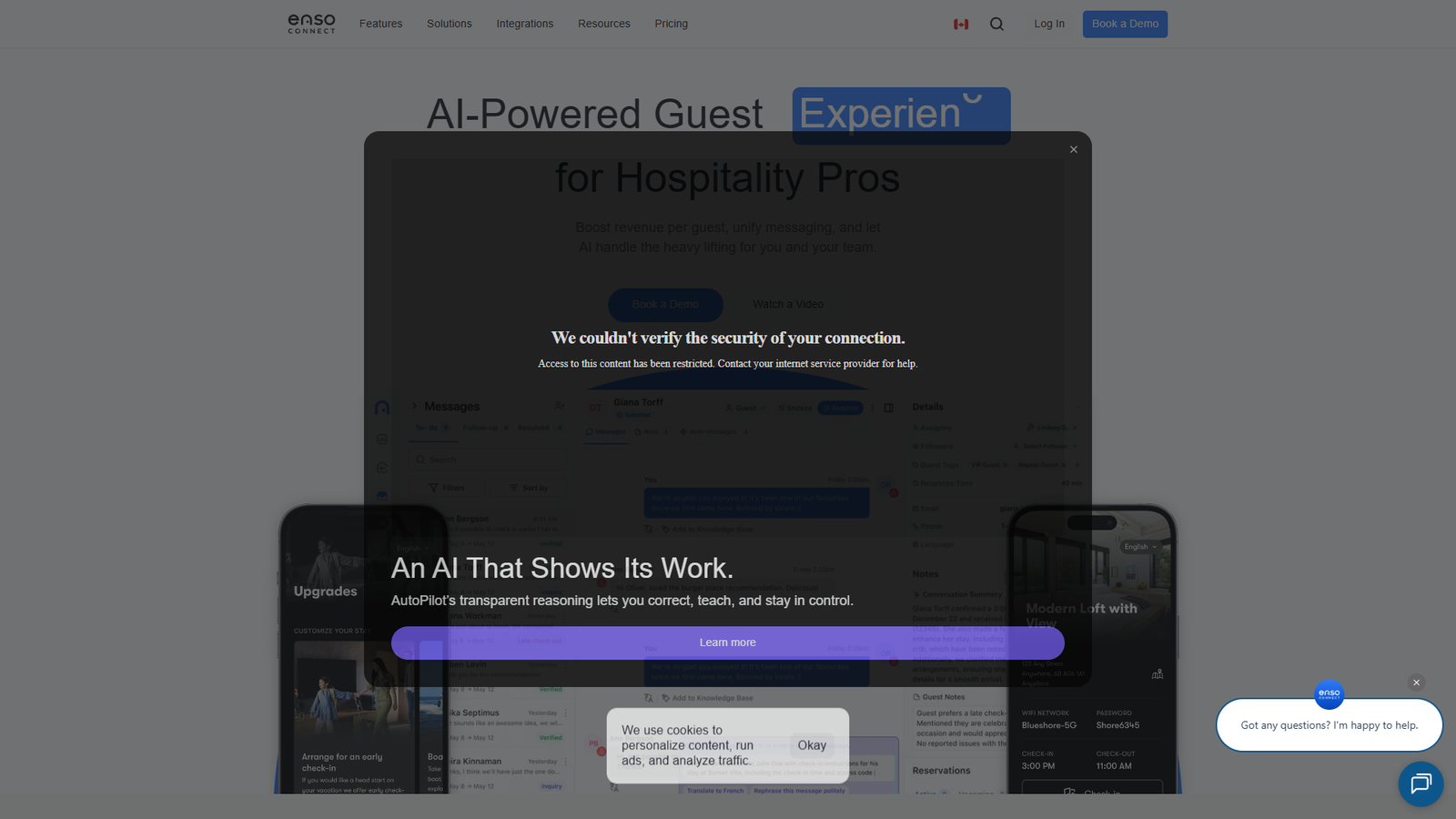 Enso Connect — это платформа цифрового гостевого сервиса с ИИ для владельцев и управляющих краткосрочной и посуточной аренды. Сервис помогает повысить доход с каждого гостя, автоматизировать рутину и сделать общение с постояльцами быстрым и персонализированным.