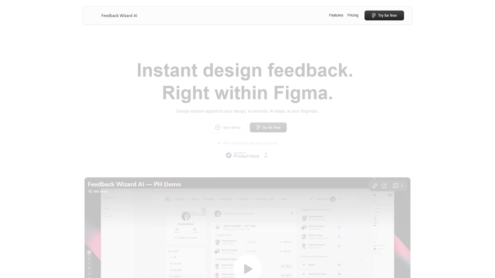 Feedback Wizard — это AI-плагин для Figma, который дает мгновенную обратную связь по дизайну прямо в рабочем файле. Инструмент анализирует макеты и выдает конкретные рекомендации по улучшению UX и визуального слоя без переключения между окнами.