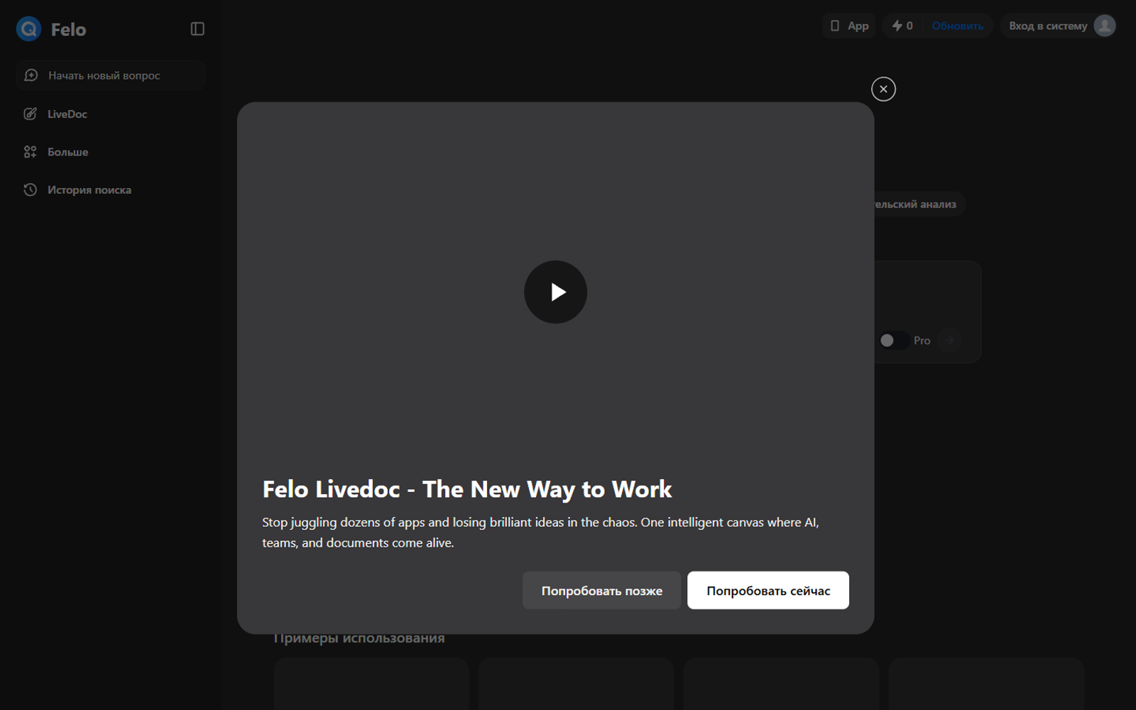 Felo AI Search — это бесплатная умная поисковая система с искусственным интеллектом, которая объединяет документы и веб‑поиск в одном рабочем пространстве. Сервис помогает быстро находить ответы, анализировать информацию и превращать её в наглядные материалы.