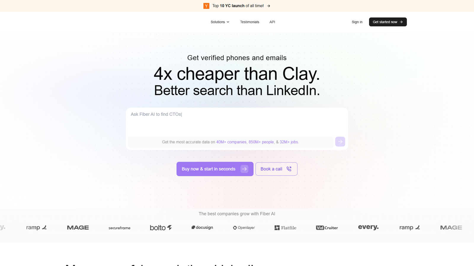 Платформа подходит как для сейлз-команд и маркетинга, так и для разработчиков: доступен API для интеграции контактных данных и поиска в ваши CRM, продукты и внутренние инструменты. Fiber AI помогает быстро масштабировать холодные обращения, улучшать конверсию и снижать стоимость лида.