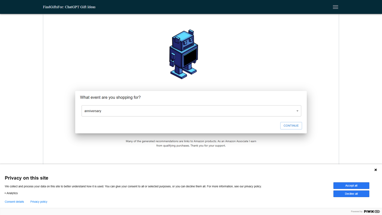 Создатель сервиса участвует в партнёрской программе Amazon и получает комиссию с подходящих покупок. Об этом честно указано на сайте, а также подробно описана политика конфиденциальности и настройки аналитики.
