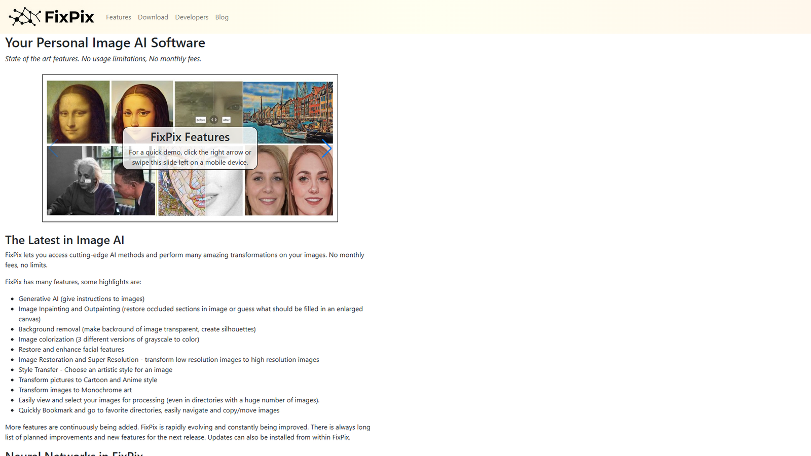 FixPix — персональное ПО для работы с изображениями на базе ИИ, ориентированное на «hands-on» подход: вы запускаете обработку локально и получаете набор современных инструментов без ежемесячных платежей и лимитов использования.