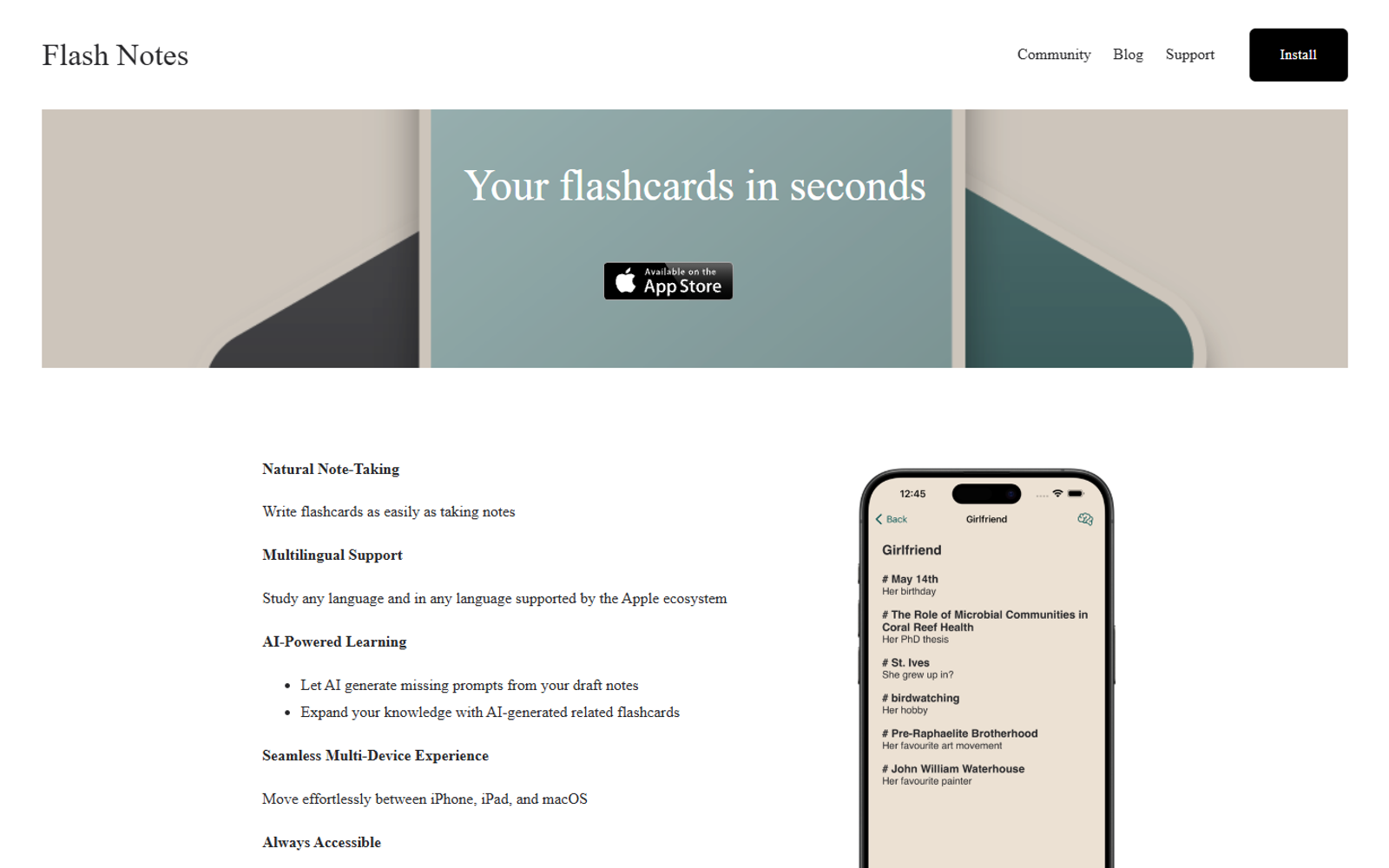 Flash Notes — это приложение для создания умных флешкарт на базе ИИ для экосистемы Apple. Пользователь пишет обычные конспекты, а нейросеть превращает их в структурированные карточки для запоминания.