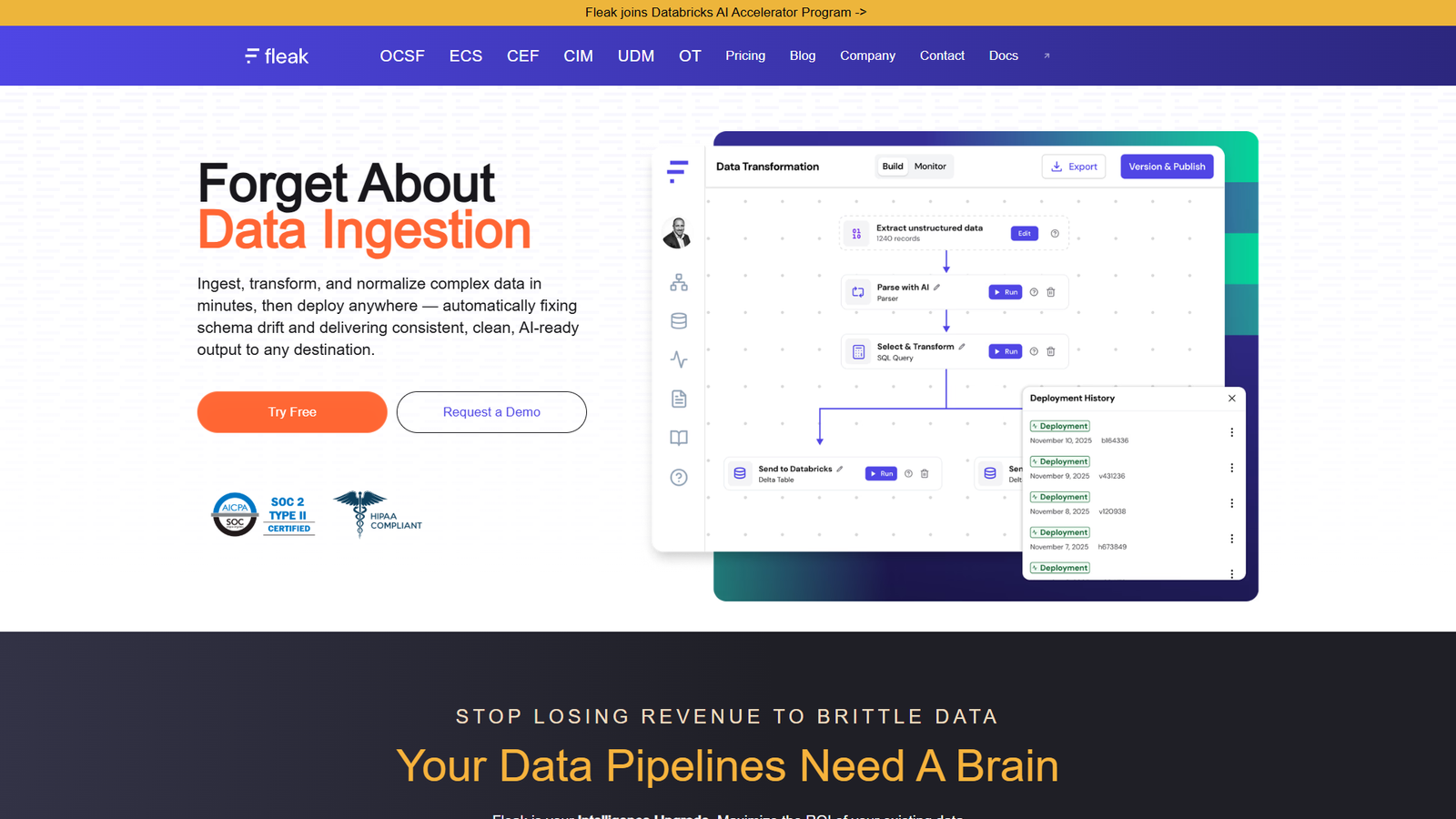Пайплайны разворачиваются в один клик в существующей инфраструктуре. Встроенный мониторинг отслеживает корректность данных и стоимость обработки в реальном времени, помогая управлять бюджетом и снижать риски. Fleak AI работает как «мозг» поверх уже развернутых хранилищ и lakehouse-платформ, повышая их отдачу и ускоряя консолидацию данных.